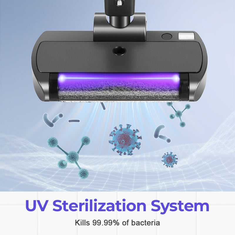 تنظيف عميق مع تعقيم بالأشعة فوق البنفسجية – يعمل ضوء الأشعة فوق البنفسجية المدمج على قتل 99.99% من البكتيريا الموجودة على الأرضيات بفعالية. فهو لا يزيل الأوساخ والبقع فحسب، بل يترك الأسطح نظيفة وآمنة للأطفال والحيوانات الأليفة.