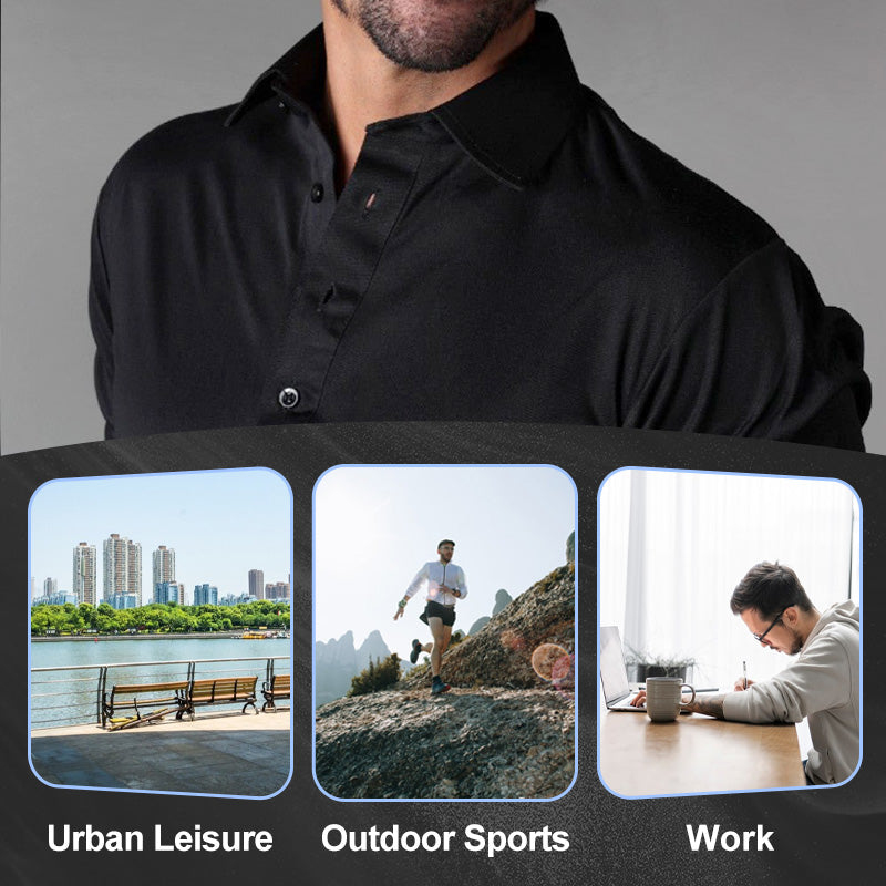 ✨New Arrival 50% Off✨Semi-Spread Collar Polo👕Dress-Shirt Polish, 4-Way Stretch Comfort, Wrinkle-Resistant, Blazer-Ready