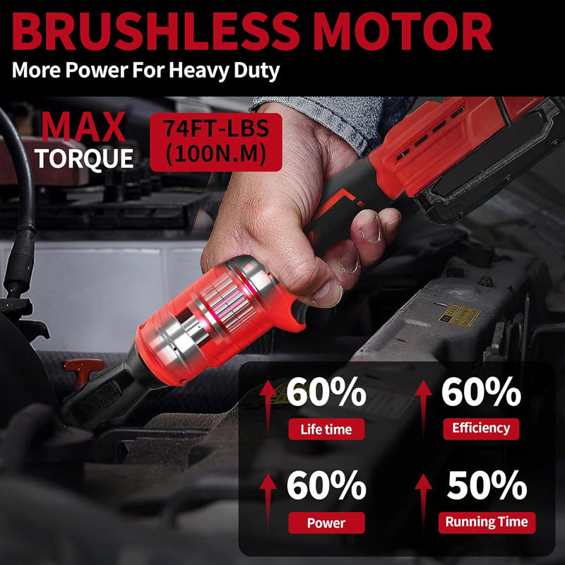 MOTORE BRUSHLESS AD ALTA COPPIA - 3/8" La chiave a cricchetto a batteria aiuta a rimuovere o installare bulloni o dadi e consente di eseguire lavori di riparazione meccanica, automobilistica e domestica senza sforzo. Molti professionisti e appassionati del fai da te si stanno orientando verso i motori brushless, che offrono una maggiore autonomia, una minore rumorosità, un tasso di guasti inferiore e un'esperienza più efficiente.