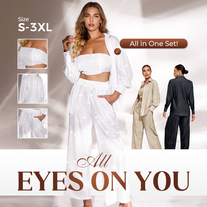 ✨50% di sconto✨Blazer con paillettes e pantaloni larghi da donna (set da 3 pezzi)