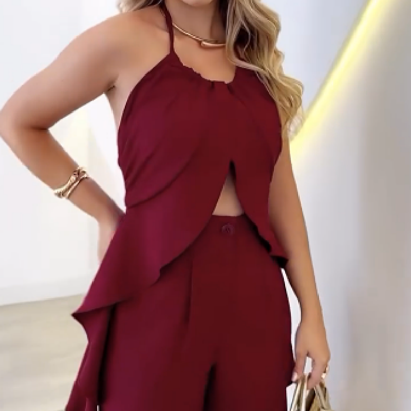 Pakken inneholder: 1 * Dametopp uten rygg &&; Løse bukser med vide ben
