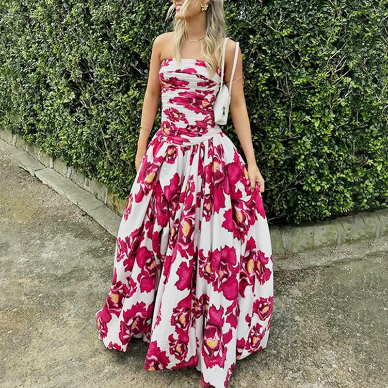 Package Includes: 1×Floral Off-Shoulder Bubble Hem Maxi Dress