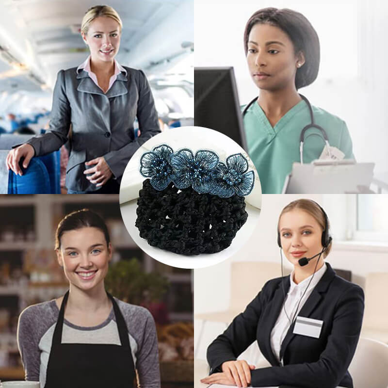 It is equipped with a non-slip spring clip, which is very convenient to wear. There is a hair net on the back, which can help you to close your hair quickly and keep it fixed and clean to let your hair clean and stylish; Best match with wear a uniform or dress to work.