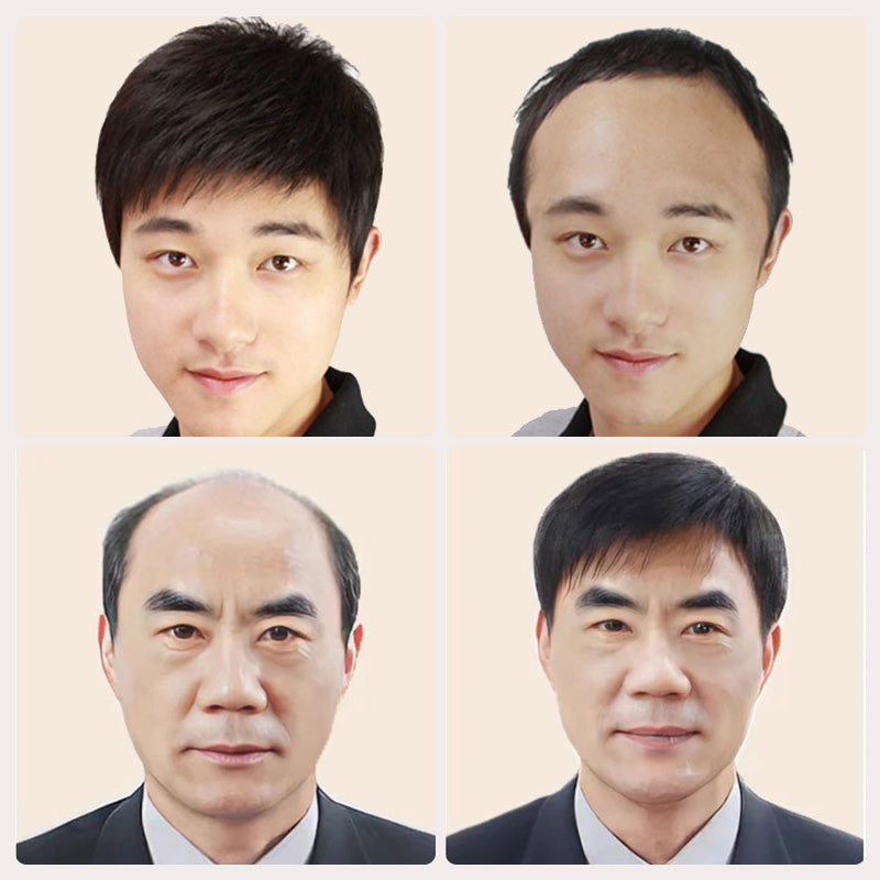 Funktion: Täcker grått hår, skallighet, skalliga huvuden
